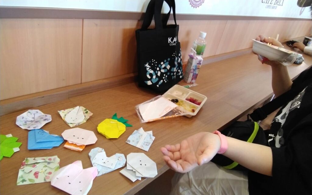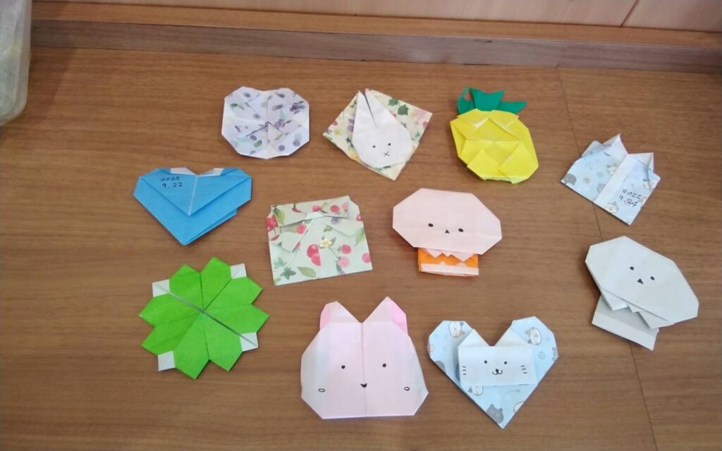 かわいいキャラクターや色とりどりのお花、フルーツなど、バリエーション豊かな折り紙作品が並び、受け取った入居者さんも大変喜ばれていました!