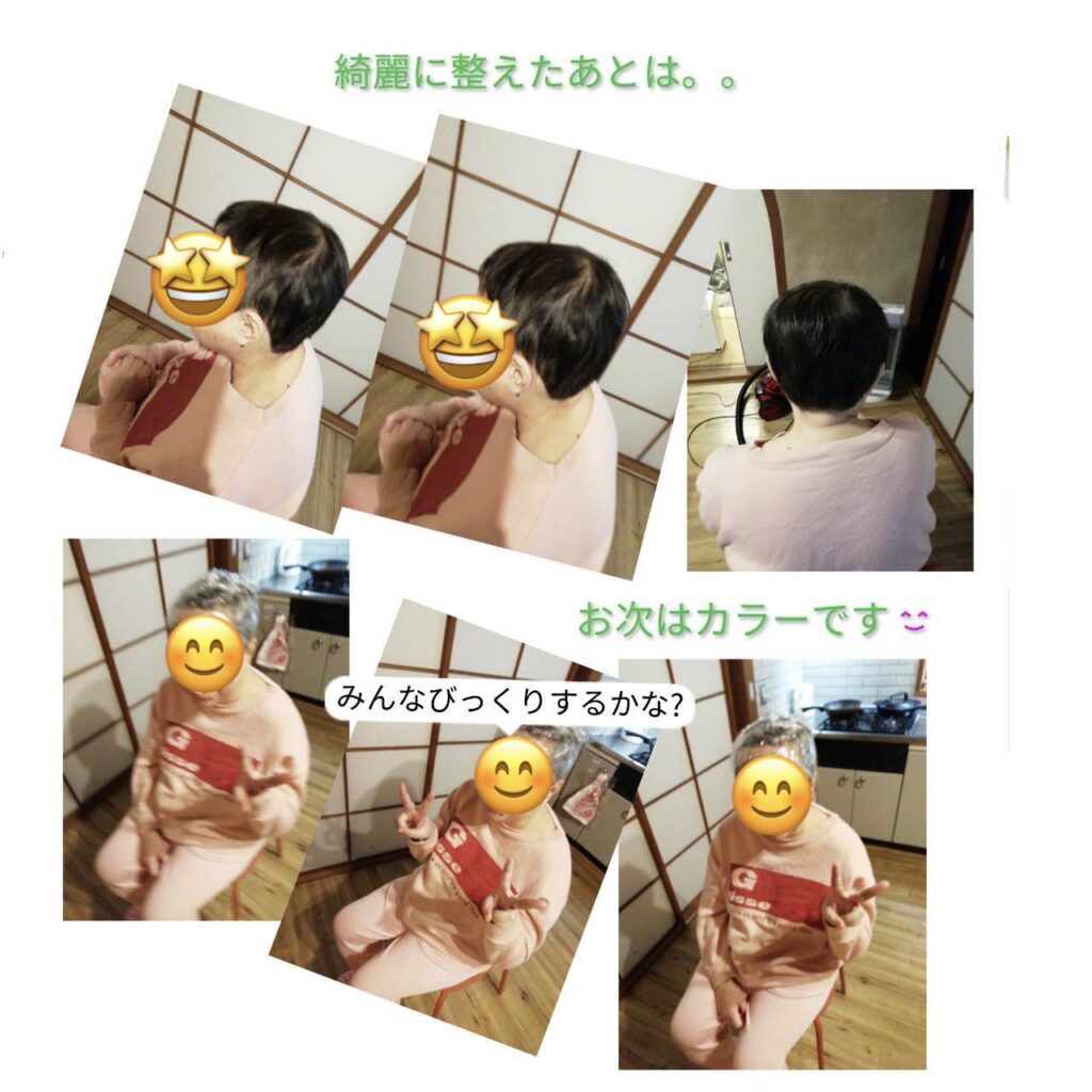 常連の入居者さんは、今回カット+カラーをオーダーさら、れとっても可愛く大変身されました。